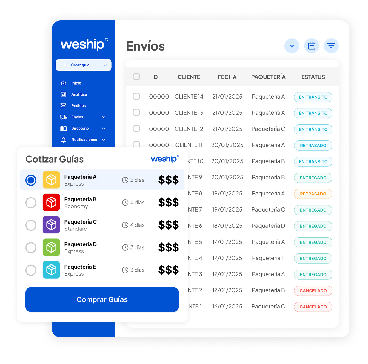 Optimiza tu logística con WeShip y ahorra tiempo y dinero en cada envío.