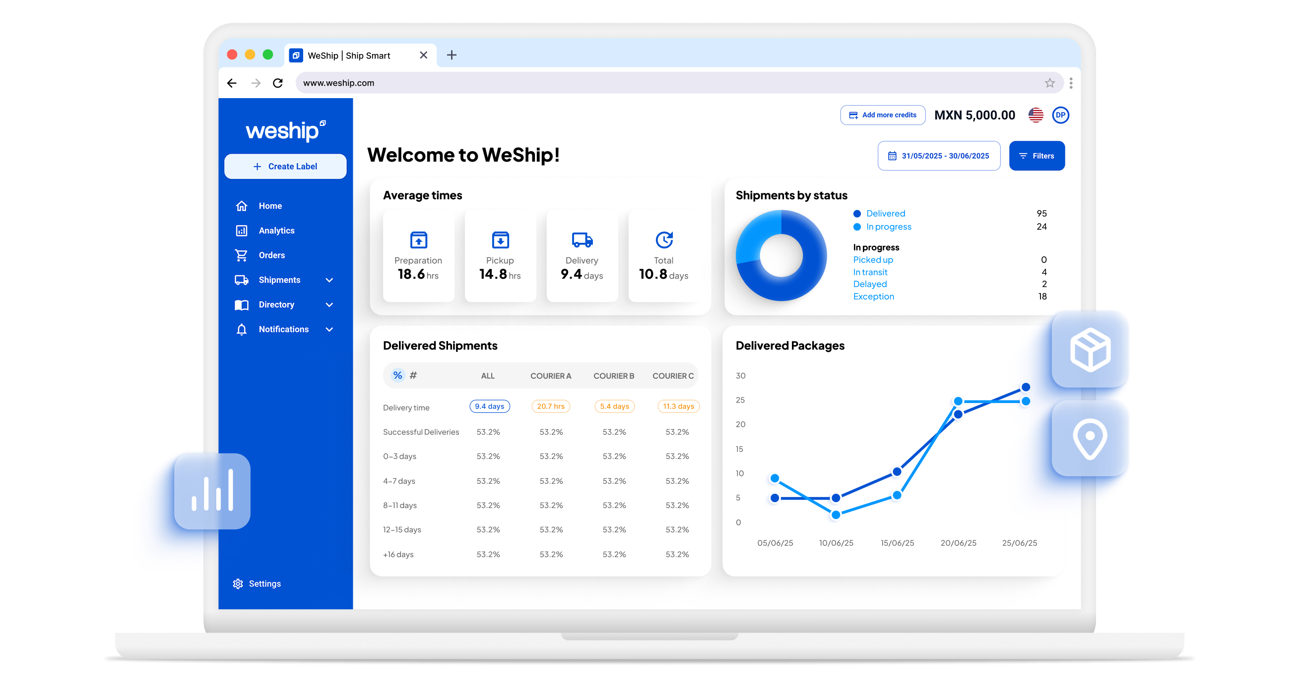 Optimize your logistics with WeShip and save time and money on each shipment.